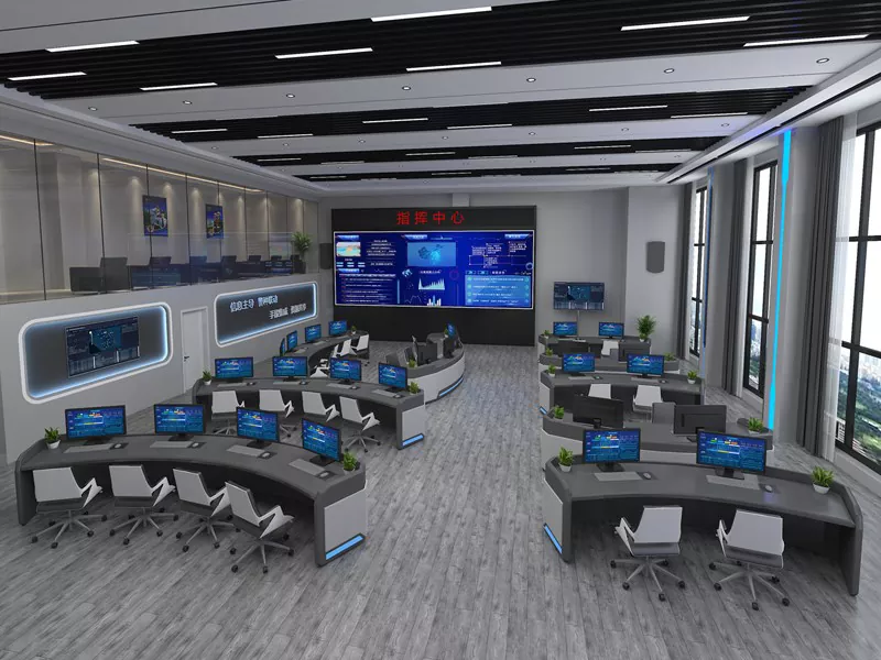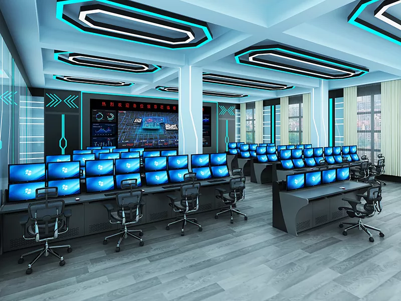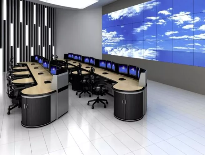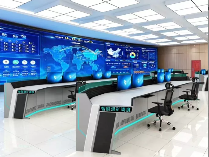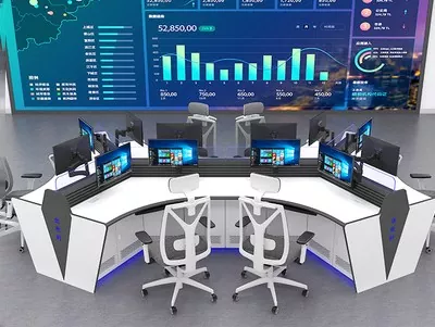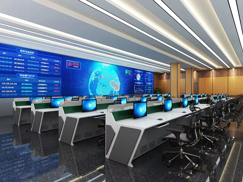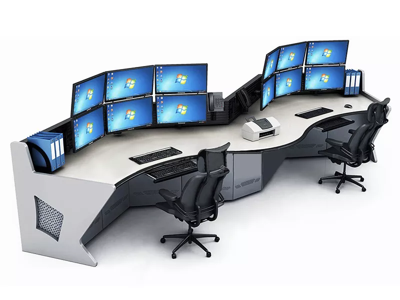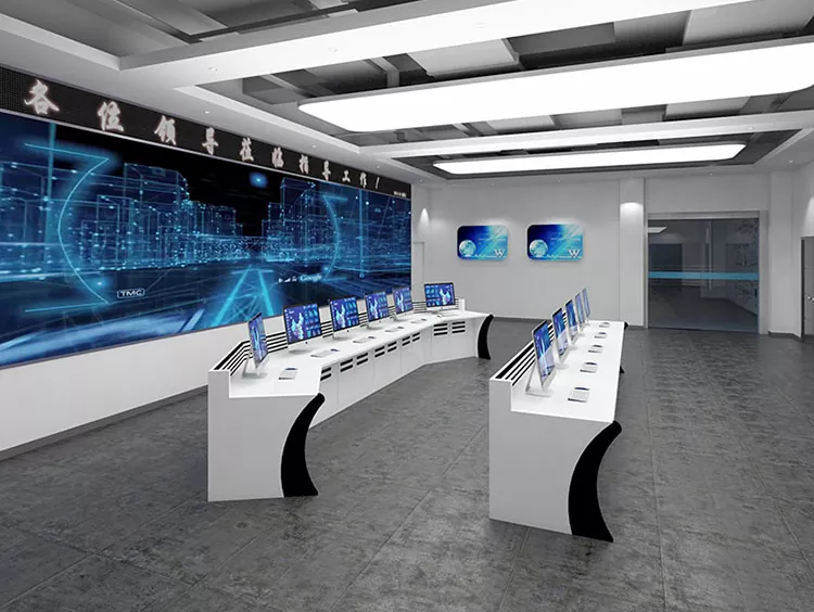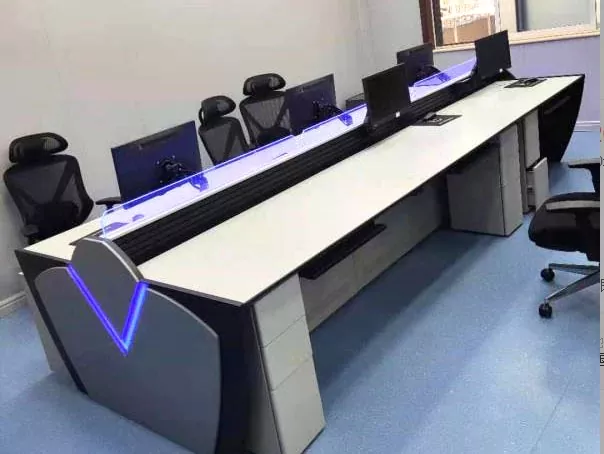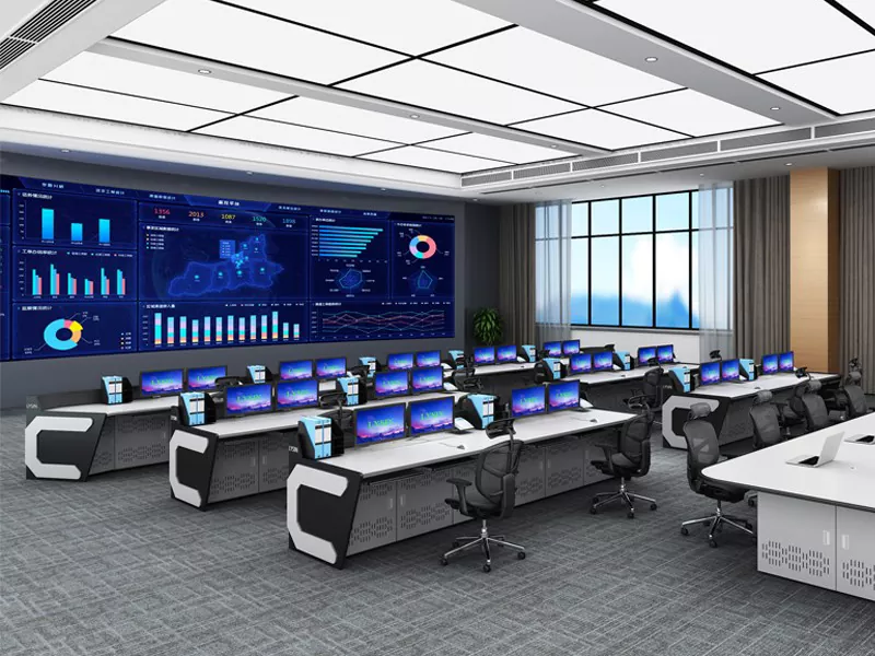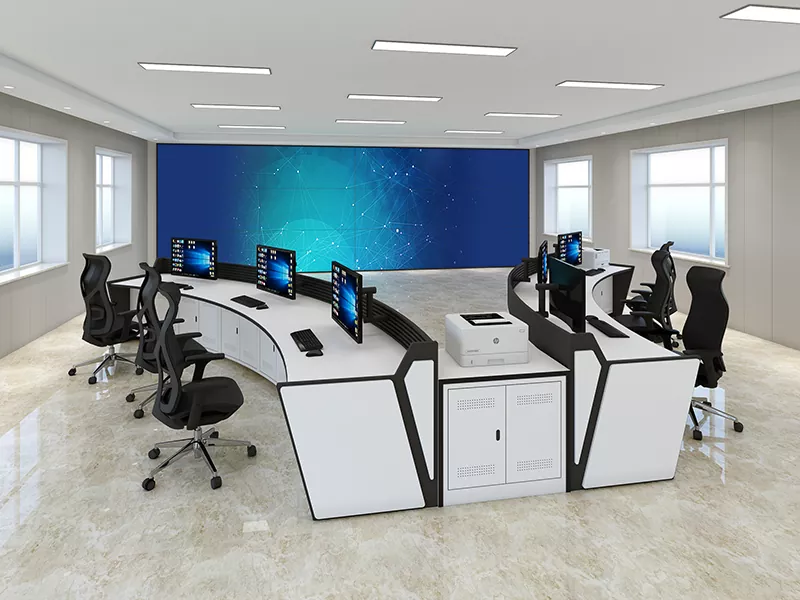 2. Struktura i rozmiar: Wybierz konstrukcje proste, w kształcie litery L, w kształcie litery U lub niestandardowe w oparciu o przestrzeń centrum dowodzenia i potrzeby operacyjne, pozostawiając wystarczającą ilość miejsca na sprzęt i personel.