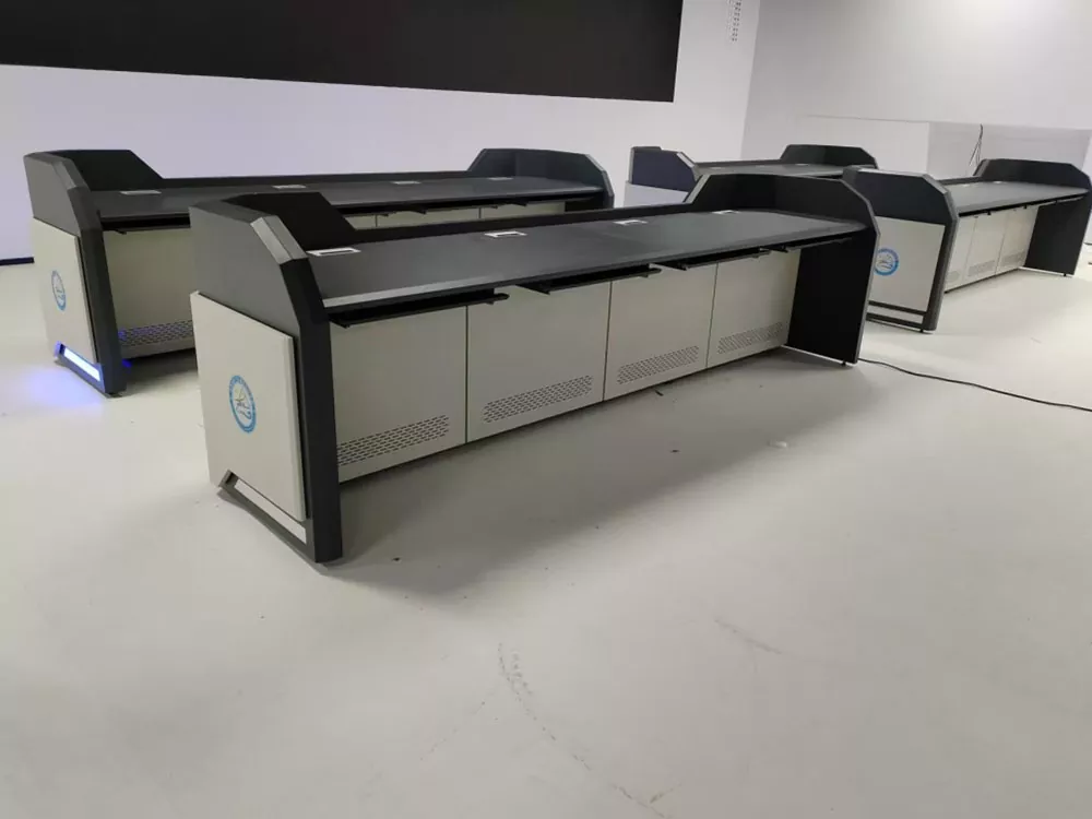 Produkt ma konstrukcję modułową, w której podstawową jednostką jest pojedyncza jednostka, którą można elastycznie wydłużać, aby dostosować ją do różnych układów przestrzennych. Jego czysty i prosty, prosty kształt maksymalizuje wykorzystanie przestrzeni w pomieszczeniu monitorowania, jednocześnie ułatwiając zorganizowany układ wielu stacji roboczych i współpracę personelu. Wykonane z blachy stalowej o wysokiej wytrzymałości, walcowanej na zimno, poddanej precyzyjnej obróbce blachy, powierzchnia jest pokryta elektrostatyczną powłoką proszkową, dzięki czemu jest odporna na rdzę, odporna na zużycie oraz łatwa do czyszczenia i konserwacji.